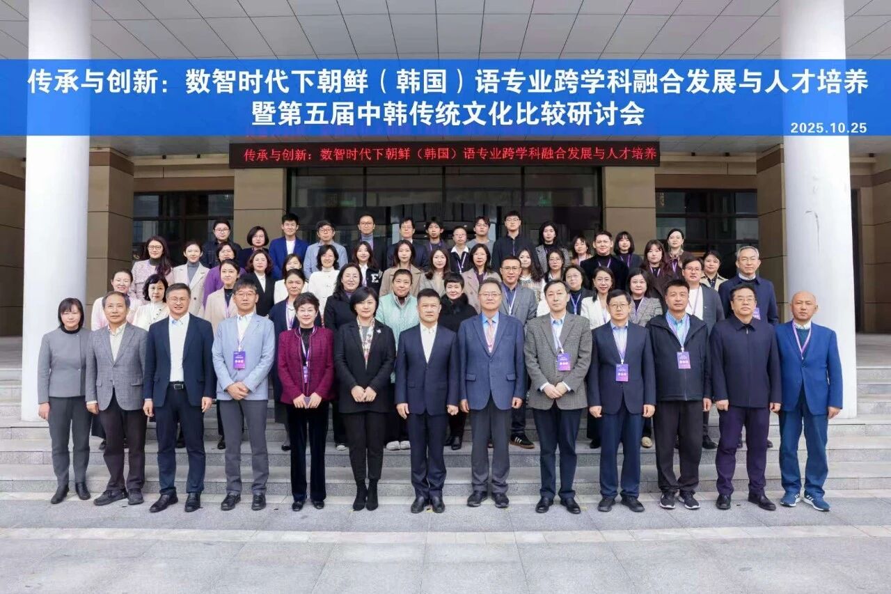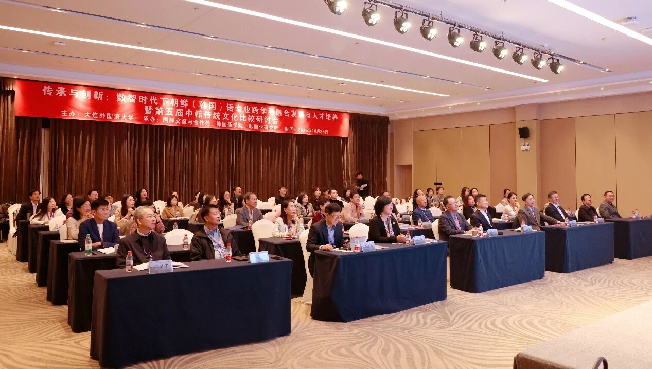 2025年10月25日,“传承与创新:数智时代下朝鲜(韩国)语专业跨学科融合发展与人才培养暨第五届中韩传统文化比较研讨会”在大连外国语大学国际文化交流中心举办。本次研讨会适逢大连外国语大学韩国语学院建院三十周年、专业建立三十五周年,由大连外国语大学主办,国际交流与合作处、韩国语学院、韩国学研究所共同承办,国内外20余所高校的50余名专家学者参会。